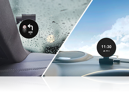 Head-up DisplayPour éviter aux conducteurs d’avoir à regarder l’autoradio pour obtenir des informations sur la navigation et la vitesse lorsqu’ils sont sur la route, Dynavin a mis au point un Head-up Display. Celui-ci est doté d’un écran LCD rond de 1,4 pouce et est conçu pour la radio Dynavin 9. Vous pouvez l’installer sur votre tableau de bord ou votre pare-brise et il affichera les informations de navigation provenant de Dynaway, Apple map avec Carplay et Google map avec Android Auto, ainsi que la vitesse du véhicule et les informations sur les radars Blitzer.de. |