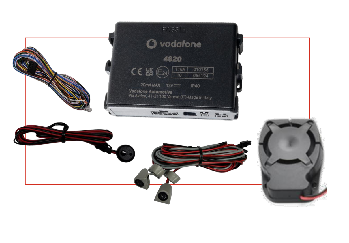 Kit d'alarme - Module 4821, Capteur, Sirène filaire NON auto alimentée et Câblage FULL - COBRA Vodafone by Phonocar - 09063